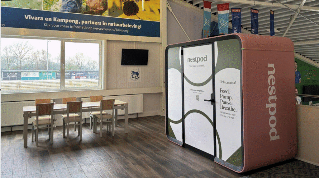 Als de grootste omnisportvereniging van Europa wil Kampong een plek zijn waar iedereen zich thuis en welkom voelt, ook jonge ouders. Daarom staat er sinds kort op de vide in het clubhuis de Nestpod: een afgesloten cabine waar je in alle rust kunt kolven of borstvoeding geven. De Nestpod past perfect bij onze visie op inclusiviteit, waarmee we het makkelijker maken om sport en gezinsleven te combineren.