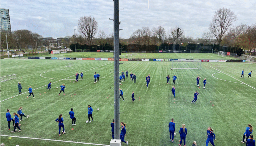 Daarnaast worden er wedstrijden gespeeld: afgelopen vrijdag 27 maart FC Utrecht MO17 (die bij ons trainen) een competitiewedstrijd tegen VRC JO15-1. En vandaag hebben we de selectie van Oranje MO15 op bezoek. ’s Ochtends trainen de meiden op veld 1 en veld 2 en in de tweede helft van de middag spelen ze wedstrijden tegen de MO17 en Jong Vrouwen van FC Utrecht.